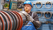 Christian Emde, Projektmanager für den Bereich Technik, freut sich, dass die Produktion in Krefeld über den Messerbauroboter verfügt: „Wir haben in unserer Produktionshalle vier Spaltanlagen. Durch eine geschickte Positionierung übernimmt der Messerbauroboter an zwei Spaltanlagen das Bestücken der Messerober- und -unterwelle, an denen mit den Einbauteilen mit den höchsten Einzelgewichten hantiert werden musste.“ An den anderen beiden Spaltanlagen werden dünnere Bleche geschnitten, für die Werkzeuge mit geringeren Einzelgewichten eingesetzt werden. Sie werden nach wie vor manuell bewegt. Installiert wurde der Roboter im Februar 2025, nach zehn Monaten im Einsatz sind die Vorteile durch die neue Anlage für die Mitarbeiter deutlich spürbar: