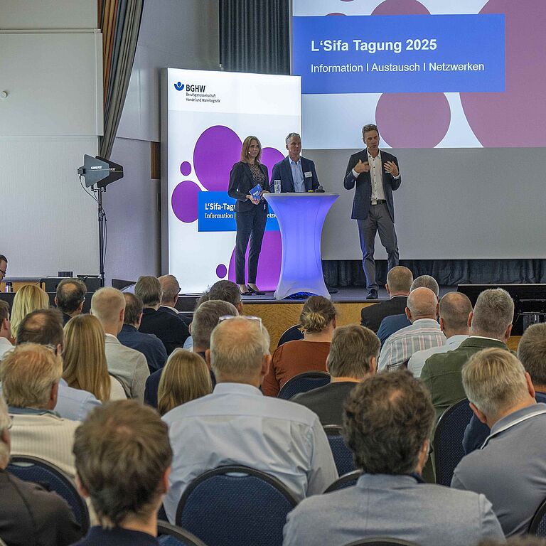 Das Programm der L'Sifa-Tagung, vollgepackt mit Fachwissen und Expertise, Networking und Austausch, kam bei den Besuchern und Besucherinnen gut an. „Das war inhaltlich richtig super. Auch toll ist, dass man sich hier austauscht mit Kollegen und über Probleme diskutieren kann, die man dann doch nicht alleine hat“, kommentierte Heiko Heinz, Expert Lead Safety & Health beim Tierfutterhersteller Fressnapf, zum ersten Mal dabei. So auch Dr. Christoph Helmke, leitende Sifa beim Transport und Logistikunternehmen Zufall Logistics Group in Fulda, der bei der Fachtagung nicht nur die Chance zum Netzwerken nutzen wollte: „Die BGHW hat uns sehr gut mitgenommen bei den Themen, an denen sie gerade forscht und die sie entwickelt. So konnte ich auch neue Trends aus dem Arbeitsschutz mitnehmen.“ Janete Egenolf, Teamleiterin Arbeitssicherheit Qualitätsmanagement bei Raiffeisen Enterprise Services Köln, schätzt ebenfalls die gute Mischung aus fachlichem und persönlichem Austausch bei der L’Sifa-Tagung: „Ich denke, das Programm war abwechslungsreich und gelungen. Beim nächsten Mal komme ich wieder.“