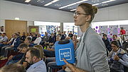 Für die Vision Zero, eine Welt ohne tödliche und schwere Arbeitsunfälle sowie Berufskrankheiten, holte Felix Zelt das Publikum mit ins Boot. Die Vision Zero wurde inzwischen in 50 Länder eingeführt und gilt seit 2017 auf allen Kontinenten. Im Workshop erarbeiteten die Teilnehmenden, mit welchen Mitteln sich die Vision in den Betrieben am besten umsetzen lässt und wie die BGHW dabei unterstützen kann.