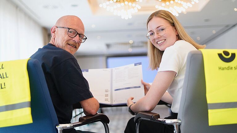 Im Grundlagenseminar der BGHW erfahren Tessa Erzgräber und Michael Schneider von der Zufall Logistics Group, worauf es als Sicherheitsbeauftragte ankommt.