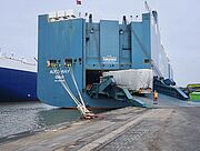 An diesem Wintermorgen hat das Frachtschiff „Auto Way“ am BLG Autoterminal in Bremerhaven angelegt und ragt haushoch an der Kaimauer empor. Noch ist die Heckrampe geschlossen, doch das Team der Lascher im Bereich „High & Heavy“ von BLG Logistics wartet bereits in Kleinbussen am Kai. Sobald sich der Schlund des knapp 200 Meter langen Frachters öffnet, beginnt ihre Arbeit. Dreizehnmal löschen, einmal laden – so lautet der Auftrag für das Schiff aus Oslo. Wie der Name „High & Heavy“ schon sagt, verladen die BLG-Hafenarbeiter im RoRo-Verfahren alles, was groß und schwer ist – außer Pkw. RoRo steht für Roll on/Roll off. Das bedeutet: Die Ladung wird nicht mit Kränen an Bord gehoben, sondern rollt auf eigenen Rädern oder auf Rolltrailern auf das Schiff und wieder herunter. Die Bandbreite der Güter reicht von großen Baumaschinen über Traktoren bis hin zu Turbinen. Pro Jahr schlägt der Bereich „High & Heavy“ am BLG Autoterminal rund eine Million Tonnen Güter um.