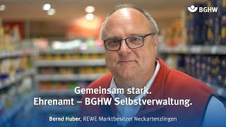 Der selbstständige Unternehmer Bernd Huber leitet in Neckartenzlingen, in der ländlichen Region südlich von Stuttgart, einen Rewe-Markt. Vor seiner Selbstständigkeit hatte er kaum Berührungspunkte mit der BGHW und wenig Ahnung von deren Leistungen. Als er an einem Brandschutzhelferseminar teilnehmen sollte und erfuhr, dass das schon seit einem halben Jahr Pflicht war, ärgerte ihn das sehr. „Ich wollte einfach an der Quelle sitzen und direkt Bescheid wissen, wofür ich als Arbeitgeber verantwortlich bin“, begründet er seine Motivation für das Ehrenamt. „Außerdem wollte ich verstehen, wofür ich Mitgliedsbeiträge überweise.“